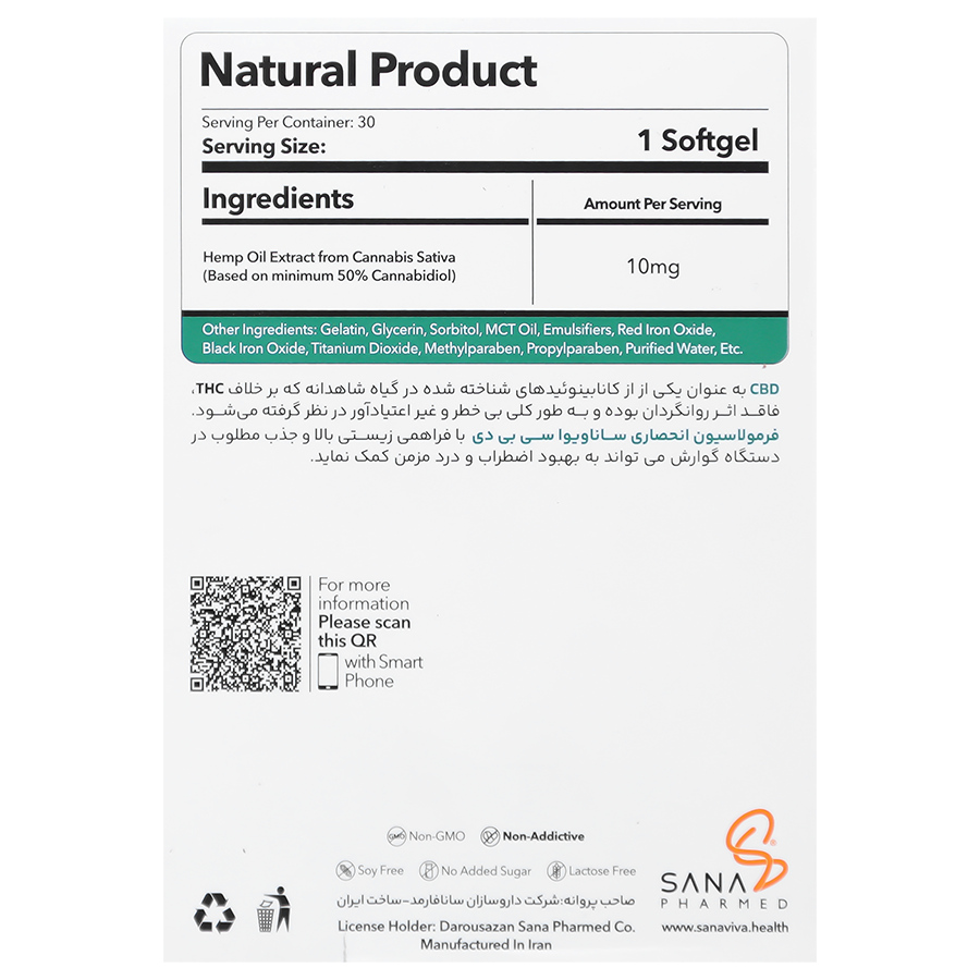 CBD با اثر بر سیستم اندوکانابینوئید بدن، بسیاری از فرآیندهای فيزيولوژيکی از جمله درد، التهاب، خلق و خو، اشتها و خواب را تنظیم می کند. CBD همچنين بر گيرنده های دیگر بدن مانند گيرنده های سروتونين و دوپامين که در تنظیم حالات روحی و اضطراب نقش دارند، تأثير می گذارد. یکی از مهم ترين مشکلات مکمل های تغذیه ای رايج CBD در بازار دارويی، فراهمی زيستی بسیار کم، جذب بسیار پایين و ناپایداری آن ها در محیط اسیدی دستگاه گوارش می باشد. لذا برای حل اين مشکلات، فرمولاسيون اختصاصی ساناويوا CBD طراحی شده تا به محض قرار گيری CBD در محیط آبی دستگاه گوارش و به کمک حرکات دودی دستگاه گوارش، ذرات ريز حاوی CBD تشکیل می شوند.
