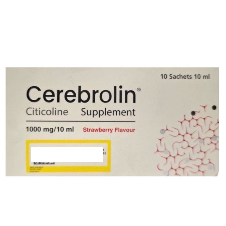 ساشه سیتی کولین 1000 میلی گرم سربرولین (Cerebroline 1000 mg Citicoline sachet - 10 pcs) یک داروی تقویتی برای مغز می باشد سیتی کولین موجود در این محصول موجب تقویت حافظه، تمرکز و توجه شده و اختلالات شناختی مانند آلزایمر و بیماری های عصبی را درمان می کند افرادی که به سکته مغزی و یا در اثر تصادفات و جراحات به آسیب های مغزی دچار شده اند با مصرف این دارو موجب تحریک بازسازی و ترمیم سلول های عصبی آسیب دیده شده و موجب بهبود عملکرد مغز می شود افراد مسن با مصرف این محصول موجب حفظ عملکرد مغزی شده و علائم پیری را کاهش می دهد و موجب پیش گیری از زوال عقل و کاهش عملکرد شناختی در افراد مسن می شود ساشه سیتی کولین با افزایش تولید انرژی در مغز موجب عملکرد بهتر مغز شده و توانایی تفکر، یادگیری و حافظه را بهبود می بخشد و بسیار موثر در بهبود حافظه کوتاه مدت و بلند مدت می باشد و افرادی که در معرض کاهش حافظه قرار دارند محصول بسیار موثری می باشد.
