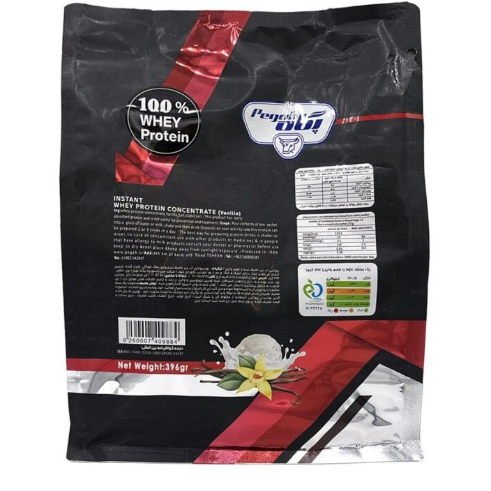 پروتئین وی 100% پگاه Protein Whey MPC 100% Pegah، پودر پروتئین آب پنیر تغلیظ شده است. بهره مندی از مکمل مناسب در کنار تمرینات ورزشی از جمله موارد قابل توجه برای ورزشکاران است که در این بین مکمل پروتئین وی از اهمیت ویژه ای برخوردار است. پروتئین وی از آنجا در ورزشکاران به روند بهبود عضله سازی کمک مؤثری می کند در نتیجه مورد استقبال ورزشکاران قرار میگیرد. پروتئین وی 100% پگاه پروتئین تغلیظ شده آب پنیر است که در روند عضله سازی و جلوگیری از تحلیل ماهیچه ها نقش مؤثری ایفا می کند، این فرآورده دارای پروتئین زود جذب بوده و به دلیل دارا بودن اسیدهای آمینه لوسین، ایزولوسین و والین در رشد و ترمیم عضلات نقش مؤثری ایفا می کند. ساشه ای بودن این محصول حسن بزرگی برای مصرف کننده ها می باشد که موجب خیال راحتی جهت حمل آن است و ورزشکاران می توانند با خیال راحت میزان دوز لازم را بر حسب تعداد ساشه در ساک با خود به همراه داشته باشند. پروتئین وی 100% پگاه مؤثر در تأمین پروتئین مورد نیاز بدن نیز می باشد.