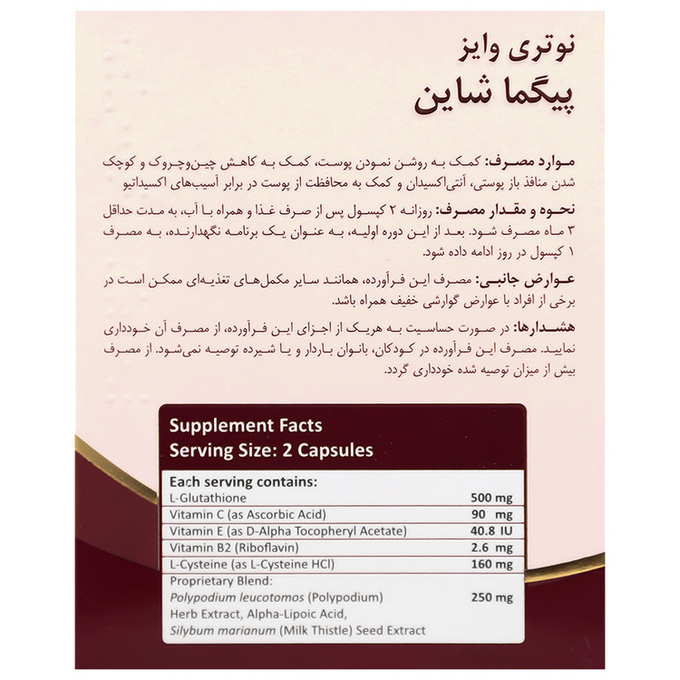 - پیگما شاین مکمل تخصصی جهت کمک به روشن نمودن پوست و کاهش لکهای تیره