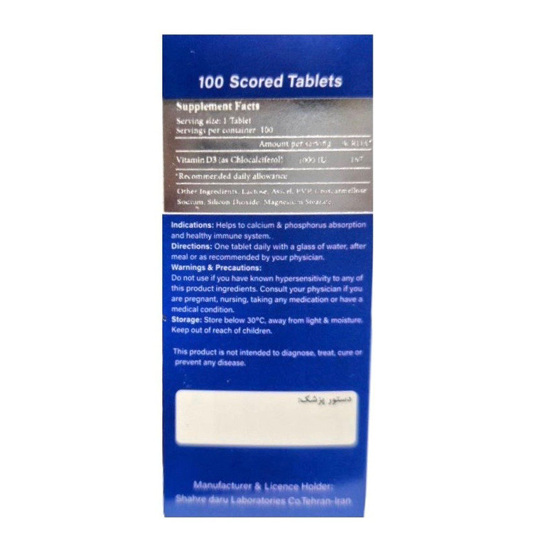 قرص خط دار ویتامین د 3 1000 واحد شهر دارو 100 عدد