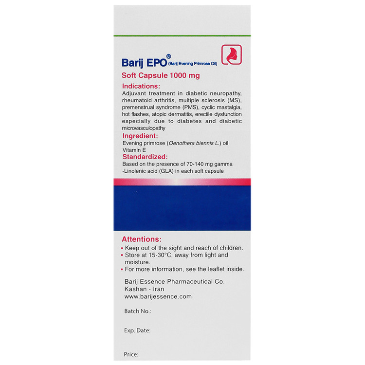 - باریج ای پی او حاوی روغن گل مغربی با غلظت استاندارد گاما لینولنیک اسید