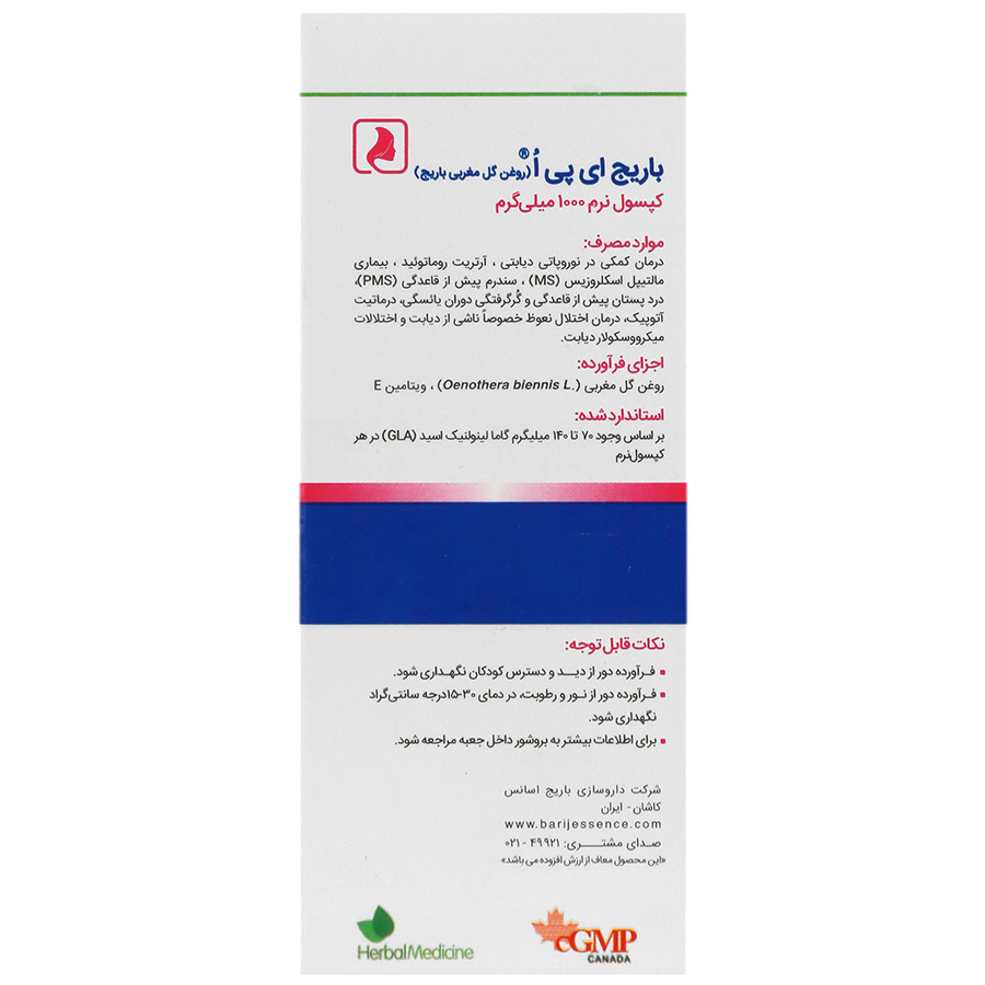 - باریج ای پی او حاوی روغن گل مغربی با غلظت استاندارد گاما لینولنیک اسید