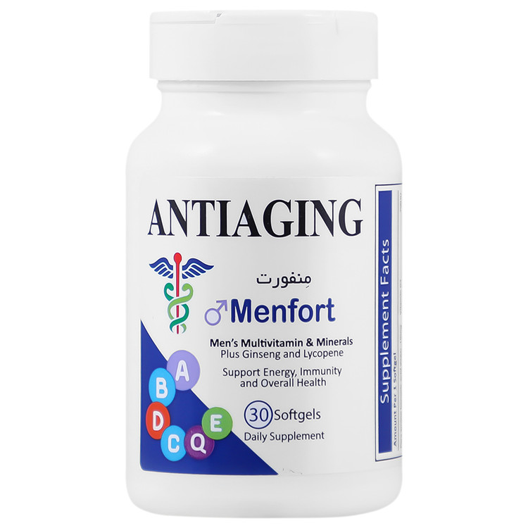 آنتی ایجینگ منفورت مکملی است که حاوی ویتامین های گروه B ویتامین A، ویتامین C و E و ویتامین D3 و مواد معدنی شامل زینک، کلسیم، آهن، منیزیم، مس، منگنز، کروم، ید، سلنیوم و اسیدهای چرب و اسید های آمینه مورد نیاز بدن و هم چنین کوانزیم کیوتن، اینوزیتول، لییکوپن، جنسینگ عصاره گیاه نخل اره ای و PABA که نیاز روزانه آقایان برای سلامت عمومی تامین کننده می باشد.