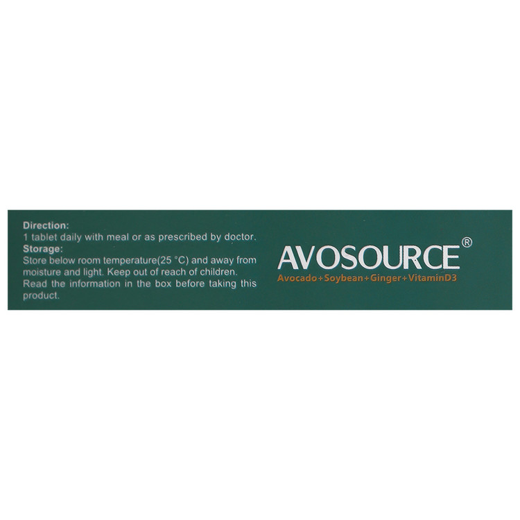 آوسورس یک فراورده طبیعی حاوی عصاره اووکادو و سویا و زنجبیل همراه با ویتامین د3 می باشد. تحقیقات نشان می دهد که ترکیب آووکادو و سویا، اثر ضد استئوآرتریت دارد و می تواند با مهار تولید واسطه های التهابی مانند پروستاگالاندین E2 و اینترلوکین 1 و کاهش التهاب در مفاصل به عنوان یک داروی تسکین دهنده مورد توجه قرار گیرد. همچنین فعالیت ضد التهابی زنجبیل با مهار فعال سازی ماکروفاژ و نوتروفیل ها و همچنین تاثیر منفی بر مهاجرت مونوسیت ها و لکوسیت ها انجام می شود. مطالعات کلینیکی نشان می دهد که مصرف عصاره زنجبیل می تواند سبب بهبود درد در بیماران مبتلا به استئوآرتریت شود.