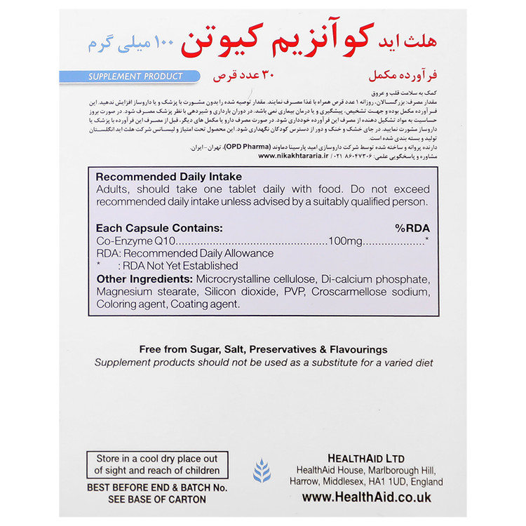 این محصول تحت لیسانس و امتیاز شرکت هلث اید انگلستان و شرکت داروسازی امید پارسینا دماوند در ایران دارنده پروانه ساخت آن می باشد.