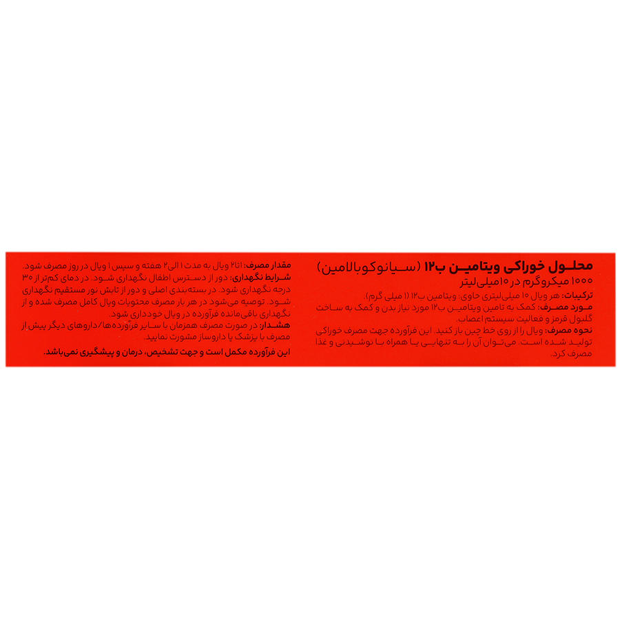 - هر ویال 10 میلی لیتری حاوی 1000 میکروگرم ویتامین ب12