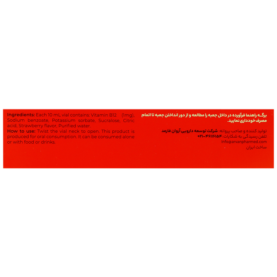 - ویال ویتامین B12 سیانوکوبالامین، با طعم دلپذیر توت فرنگی