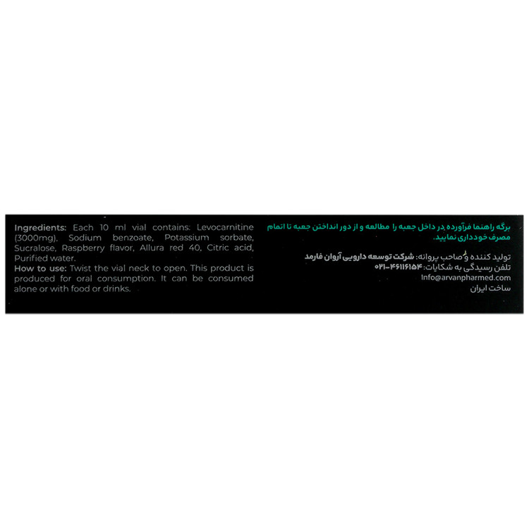 - ویال ال کارنیتین آروان فارمد با طعم دلپذیر تمشک