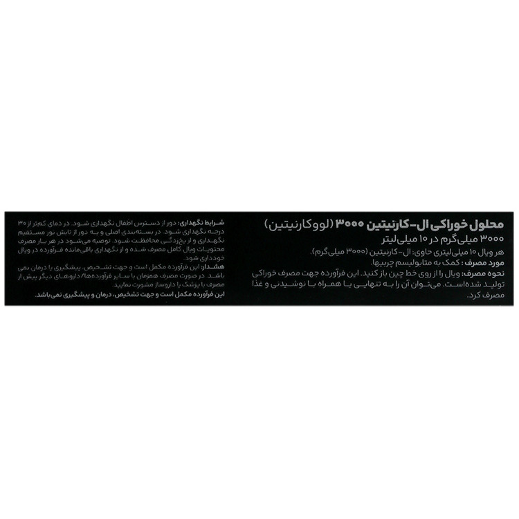 - هر ویال 10 میلی لیتری حاوی 3000 میلی گرم ال کارنتین
