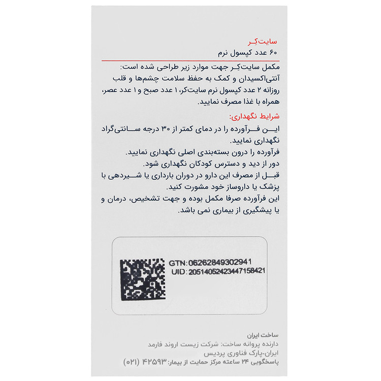روزانه 2 عدد کپسول نرم سایت کر، 1 عدد صبح و 1 عدد عصر، همراه با غذا مصرف نمایید.