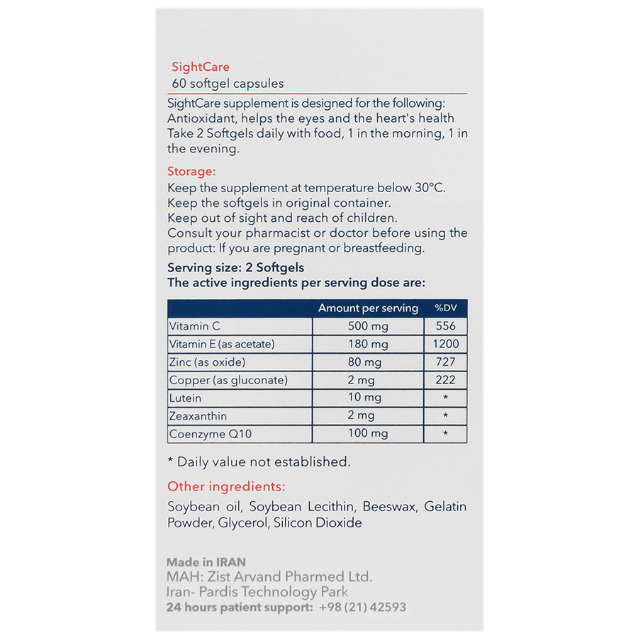 | Zeaxanthin | Zeaxanthin | 2 mg | ** |