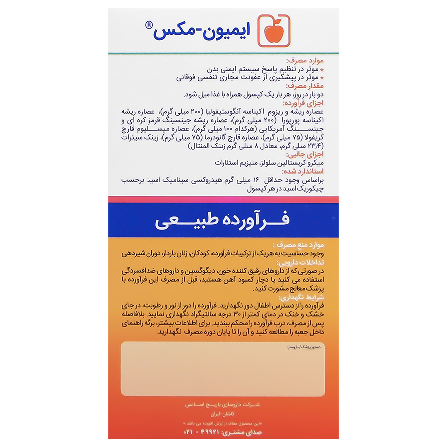 - موارد احتیاط: در صورتی که مشکل طبی دارید، قبل از مصرف با پزشک خود مشورت کنید. در صورت ابتلا به دیابت، اختلالات کبدی و یا علایم ناشی از مشکلات کبدی ( نظیر درد شکم، ادرار تیره و یا زردی ) قبل از مصرف با پزشک معالج مشورت کنید. چنانچه سابقه ابتلا به سرطان دارید و یا به بیماری های سیستمیک پیشرونده نظیر سل، لکوزیس،کلاژنوزیس، MS و ایدز مبتلا هستید یا اگر به بیماری های خود ایمنی مبتلا هستید و داروهای سرکوب کننده سیستم ایمنی مصرف می کنید قبل از مصرف فرآورده با پزشک خود مشورت کنید. اگر به اختلالات سیستم ایمنی ( نظیر بیماری کرون، میانستنی گراو، آرتریت روماتوئید، لوپوس اریتماتوز سیستمیک و ... ) مبتلا هستید، قبل از مصرف با پزشک مشورت کنید. برای استفاده بیش از 8 هفته با پزشک معالج خود مشورت کنید.
