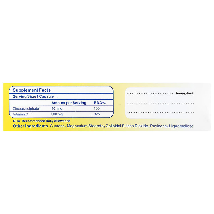 - حاوی 300 میلی گرم ویتامین سی، 10 میلی گرم زینک (بصورت سولفات)