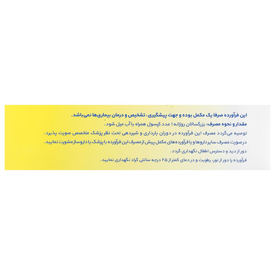 - این فرآورده صرفا یک مکمل می باشد و جهت تشخیص، پیشگیری و یا درمان بیماری ها تجویز نمی شود.