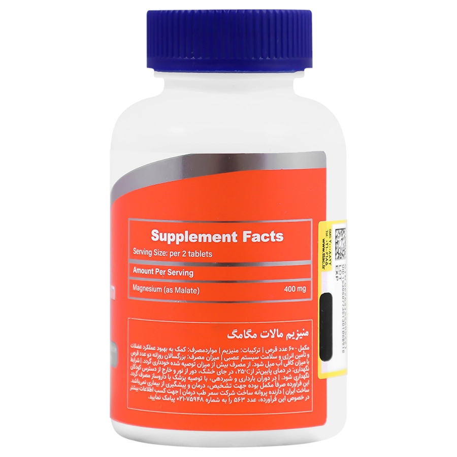 - منیزیم مالات مگامگ، حاوی 400 میلیگرم منیزیم به فرم منیزیم مالات به ازای 2 عدد قرص