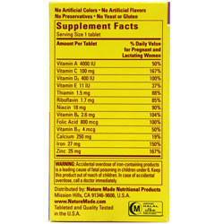 این محصول غنی از: • اسید فولیک (800 میکروگرم) که برای تشکیل لوله عصبی جنین ضروری است و 100% نیاز روزانه مادر باردار به این ماده حیاتی را تامین می کند. • آهن (27 میلی گرم) که برای رشد و نمو جنین و جلوگیری از کم خونی مادر ضروری است و 100% نیاز روزانه به این ماده حیاتی را تامین می کند. • زینک یا روی (25 میلی گرم) که جهت شکل گیری سیستم عصبی جنین و همچنین رشد و تکامل جنین ضروری است. • ویتامین د (400 واحد) که در حفاظت از استخوانهای مادر باردار و شیرده اهمیت بسزایی دارد. • ویتامین آ (4000 واحد) به فرم بتاکاروتن (پیش ساز ویتامین A) که جهت رشد و تکامل جنین ضروری است. این فرم ویتامین A (بتا کاروتن) فاقد هر گونه عوارض تراتوژنیک (جهش زا) در جنین می باشد. منبع: سایت پوراطب