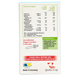 زیر 1 سال: روزانه 1 میلی لیتر بعد از غذا بالای 1 سال: روزانه 2 میلی لیتر بعد از غذا یا طبق دستور پزشک (پیش از مصرف به آرامی تکان دهید)ترکیبات: