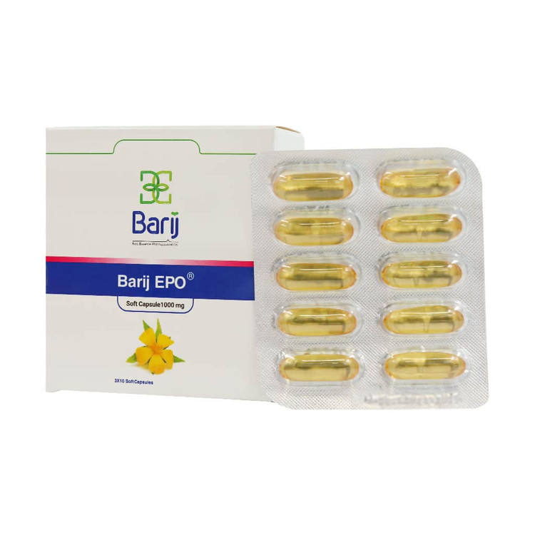 - باریج ای پی ا، حاوی گل مغربی استاندارد شده با 70-140 میلی گرم گاما لینولنیک اسید و ویتامین E
