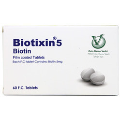- موارد منع مصرف : حساسیت به بیوتین تداخل دارویی : - شواهدی دال بر کاهش سطح پلاسمایی بیوتین در اثر مصرف این دارو با داروهای ضد تشنج وجود دارد. - همزمان مصرف تخم مرغ و بیوتین سبب اختلال عملکرد بیوتین می گردد. عوارض جانبی : - اختلالات دستگاه گوارش - واکنش های آلرژیک پوستی مانند خارش ، آنژیوادم ، جوش و کهیر که ممکن است در واکنش نسبت به ماده موثره یا مواد جانبی دارو ایجاد گردد. توصیه به بیمار : - بیوتین می تواند در افراد مسن مصرف شود. - بیوتین در بیماران کلیوی و کبدی منع مصرف نداشته ، در صورت لزوم مصرف تنظیم دوز باید صورت بگیرد. بارداری و شیردهی : - رده بارداری : ایمن هیچ مستندات علمی در مورد تراتوژنیستی دارو در حیوانات وجود ندارد ولی بهتر است این دارو در طول مدت بارداری مصرف نشود. - شیردهی : بیوتین در شیر مادر ترشح می شود اما شواهد علمی مبنی بر بی خطر بودن بیوتین در دوره شیردهی در دسترس نمی باشد.