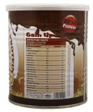 - نکات: در صورت حساسیت به هر یک از اجزای این محصول از مصرف آن خودداری نموده و با پزشک مشورت نمایید. مقادیر مصرف بر حسب وزن، جنس و طول دوره مصرف رعایت شود. در صورت استفاده از این مکمل مقدار بیشتری آب در طول روز بنوشید تا مواد زاید حاصل از متابولیسم پروتئین ها از بدن دفع شود. به این منظور باید به ازای مصرف هر پیمانه از گین آپ یک لیوان آب به مصرف روزانه اضافه کنید. مصرف این فرآورده در افرادی که داروهای آنتی پیرین وتئوفیلین استفاده می کنند، مجاز نمی باشد. این محصول حاوی فنیل آلانین می باشد؛ بنابراین در بیماران مبتلا به فنیل کتونوری نباید مصرف شود. در افراد مبتلا به نارسائی کلیوی این مکمل ها مصرف نشود.