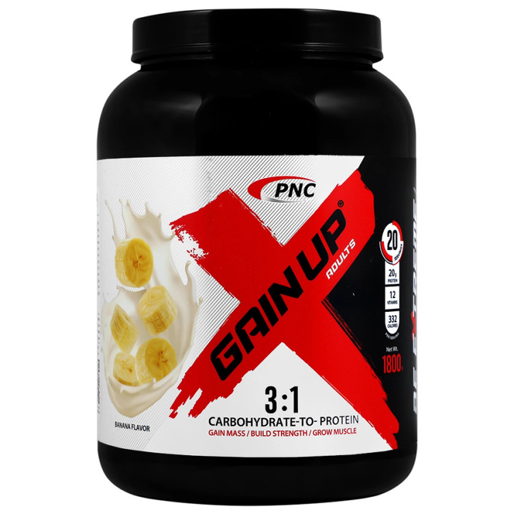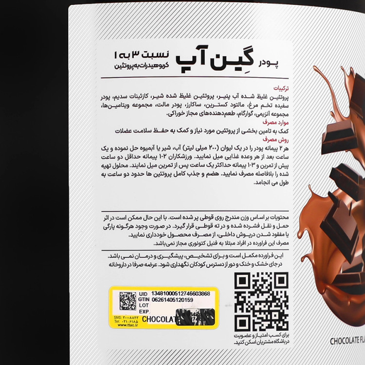 - گین آپ، مکمل گینر دارای نسبت کربوهیدرات به پروتئین 3 به 1