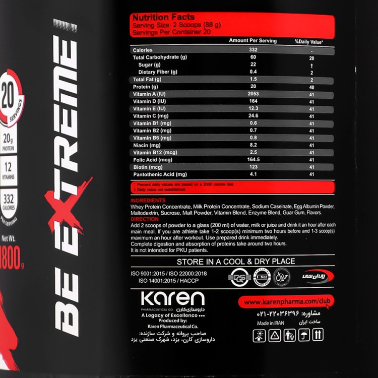 هر 2 پیمانه پودر را در یک لیوان (200 میلی لیتر) آب، شیر یا آبمیوه حل نموده و یک ساعت بعد از هر وعده غذایی میل نمایید. ورزشکاران 2-1 پیمانه حداقل دو ساعت پیش از تمرین و 3-1 پیمانه حداکثر یک ساعت پس از تمرین میل نمایند. محلول تهیه شده را بلافاصله مصرف نمایید. هضم و جذب کامل پروتئین ها حدود دو ساعت به طول میانجامد.