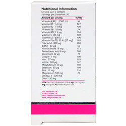 - حاوی 800 میکروگرم فولیک اسید برای کمک به پیشگیری از بروز نقص لوله عصبی در جنین