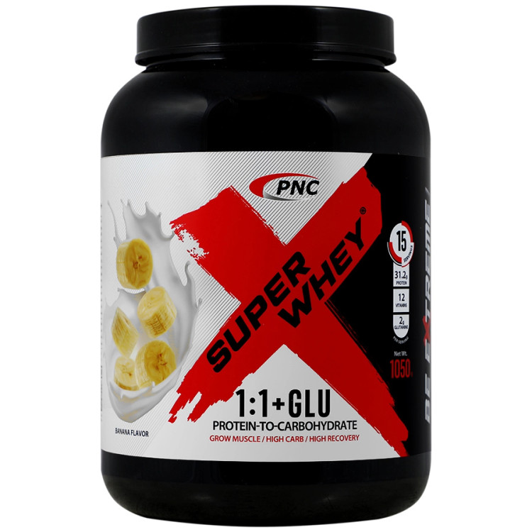 - سوپر وی، مکمل گینر با نسبت تقریبا برابری از پروتئین و کربوهیدرات