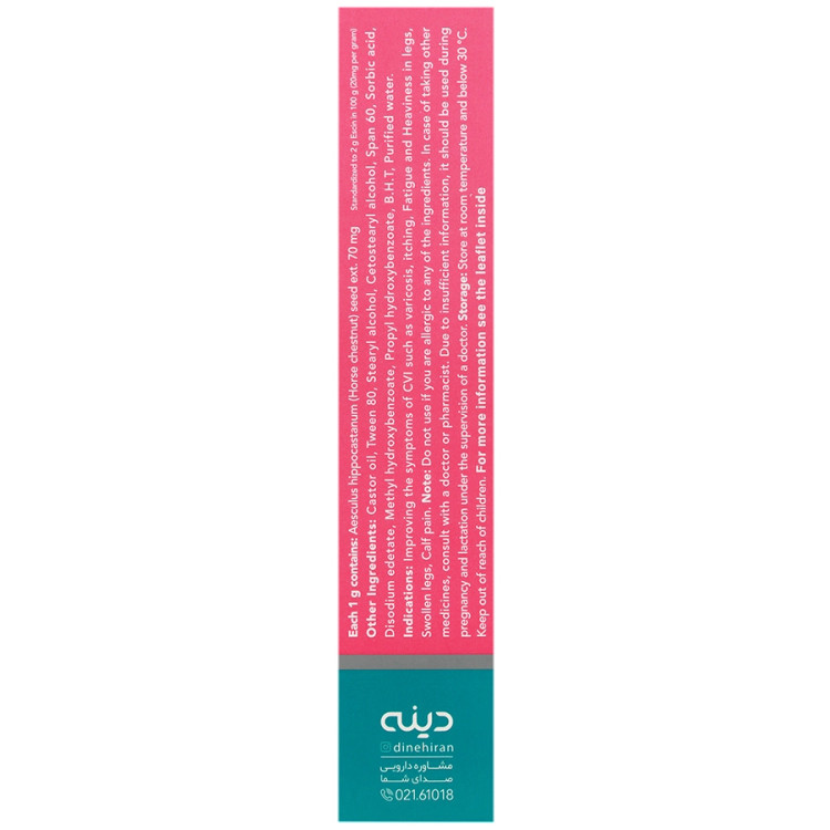 - عوارض جانبی: تا کنون در مصرف موضعی فرآورده های حاوی عصاره شاه بلوط و عصـاره کالاندولا، عارضه ای گزارش نشده است. فقط در افراد حساس به اجزای فرآورده ممکن است عوارض حساسیتی مانند خارش و قرمزی در موضع ایجاد شود.