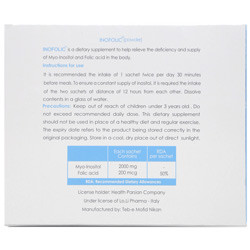 - روش مصرف پودر inofolic: روزانه 2 عدد ساشه با فاصله زمانی 12 ساعته