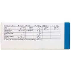 - حاوی آهن سولفات، آهن فومارات، فولیک اسید و هموگلوبین