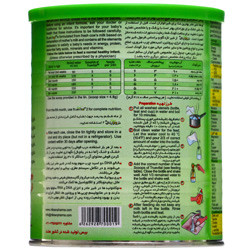 بطری، سرپستانک و سرپوش بطری را قبل از استفاده بدقت بشویید و خوب بجوشانید. آب آشامیدنی تمیز را بجوشانید و بگذارید ولرم شود. حدودا 40 درجه سانتیگراد. حدودا دو سوم آب جوشانده شده مورد نیاز را در داخل بطری تمیز و ضد عفونی شده بریزید. پیمانه داخل قوطی را از پودر شیر پر کرده و با لبه کند کارد سطح آن را صاف کنید و میزان مورد نیاز را برابر جدول تغذیه در بطری بریزید. درب بطری را ببندید و حدودا 15 تا 20 ثانیه بطری را خوب تکان دهید و بقیه آب مورد لزوم را به آن اضافه کنید و بطری را مجددا تکان دهید. پستانک را سر بطری قرار دهید و دقت نمایید شیر آماده شده دارای درجه حرارت مناسب باشد.