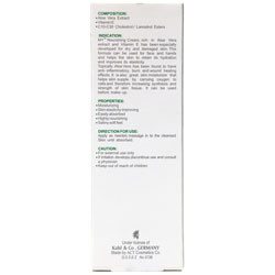 - کرم چرب حاوی ویتامین E و عصاره گیاهی آلوئه ورا با خواص ضد التهابی، ترمیم کنندگی و ضد خارش