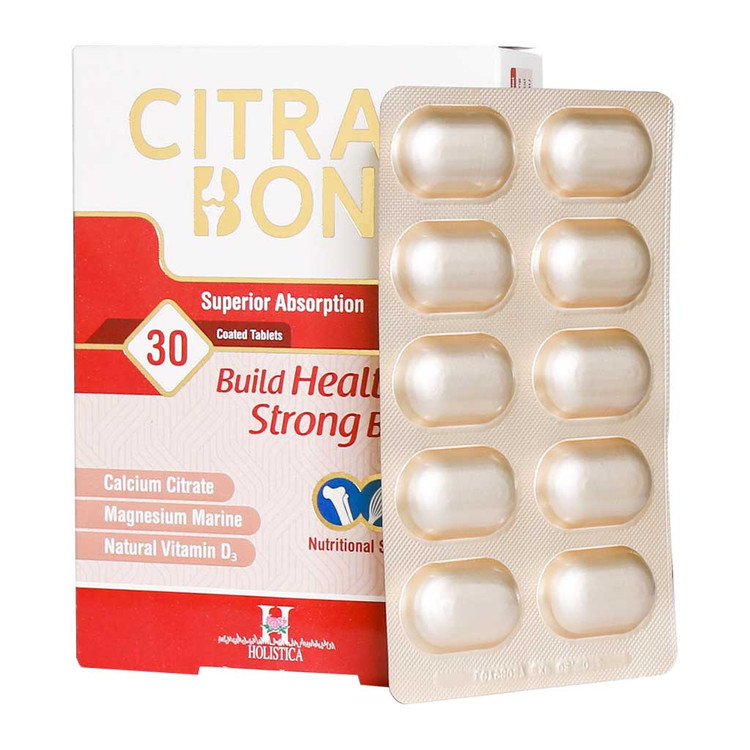 citra bone دارای کلسیم سیترات است که جذب بالایی دارد و برخلاف برخی مکملهای کلسیم، مشکلات گوارشی ایجاد نمیکند برای استفاده در افراد مستعد سنگ کلیه مناسب میباشد. همچنین سیترابن حاوی منیزیم دریایی و ویتامینD3 طبیعی بوده و فاقد گلوتن، شکر و مواد نگهدارنده است.