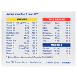 ویتامین ها و مواد معدنی موجود در قرص مولتی ویتامین کامپلیت یوروویتال با خصوصیات به شرح زیر می باشد: