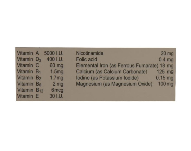 - حاوی ترکیبی از ویتامینهای محلول در آب، ویتامینهای محلول در چربی و مواد معدنی