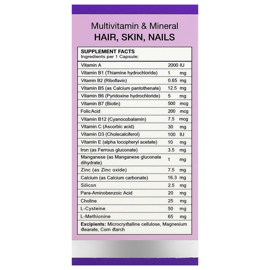 | ویتامین ب7 ( بیوتین ) | Vitamin B7 ( Biotin ) | 500 mcg | ** |