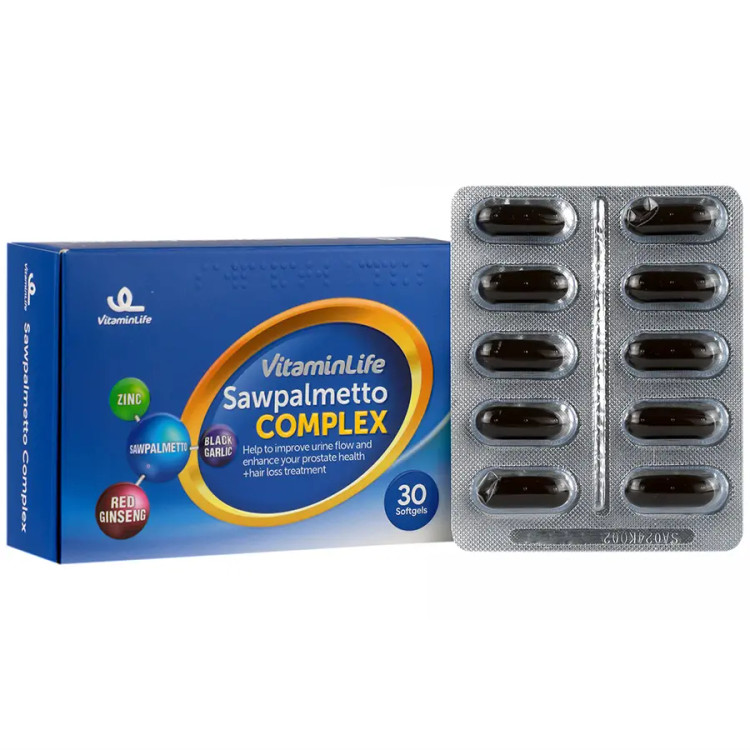 - سافت ژل ساوپالمتو کمپلکس حاوی نخل اره ای (Saw palmetto)، جین سینگ قرمز، سیر سیاه و عنصر روی