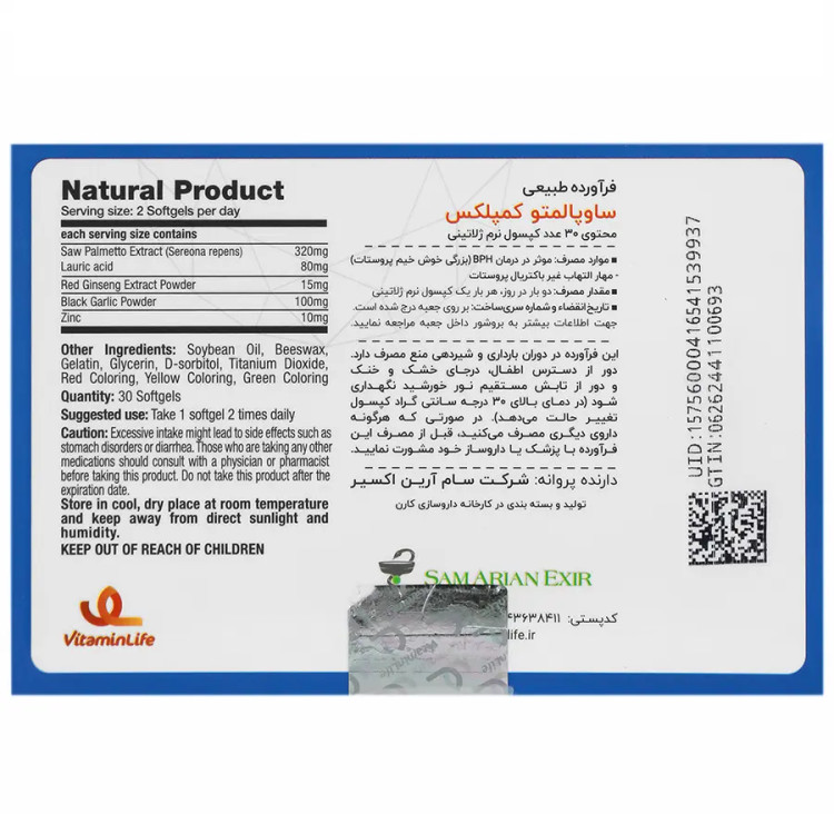 - با نام فعلی ساوپالمتو کمپلکس ویتامین لایف، ساخت ایران