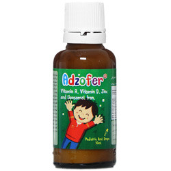 - قطره آدزوفر، کمک به تامین ویتامین A، ویتامین D، زینک و آهن در کودکان