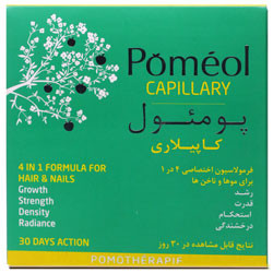 فرمولاسیون اختصاصی 4 در 1 برای موها و ناخن ها موها و ناخن ها به عنوان سرمایه های زیبایی باید تحت مراقبت ویژه قرار گیرند. فرآورده پومئول کاپیلاری با توجه به فرمولاسیون 4 در 1 خود سبب رشد، قدرت، استحکام و درخشندگی موها و ناخن ها می گردد. - تنوع زیستی و عملکردهای همزمان مواد موثره: مواد موثره جدید موجود در پوموتراپی (سیب درمانی)، فیتوتراپی و نوتریتراپی به جهت عملکرد همزمان بر روی زیبایی مو و ناخن، برای فرآورده پومئول کاپیلاری انتخاب شده اند. - پوموتراپی: Apple Nutricible، ماده موثره اختصاصی از شرکت Clemascience است که در ترکیب با عصاره مرکبات و بلوبری، به حذف رادیکال های آزاد، جهت مقابله با سفید شدن زود رس مو کمک می کند و سبب تحریک جریان خون در عروق مویرگی محیطی در پوست سر گشته و در نتیجه شکنندگی و ریزش موی سر را کاهش می دهد. - فیتوتراپی: پروتئین های هیدرولیز شده گندم و آمینو اسیدها در ترکیب با عصاره غنی از سیلیکای بامبو، سبب بهبود رشد مو و ناخن ها می گردد. - نوتریتراپی: ویتامین های B6, B5, H, B3 و E سبب درخشندگی موها می گردند و همچنین زینک همراه با آمینو اسیدها موجب سنتز کراتین شده که در نتیجه سبب افزایش ضخامت و استحکام موها می گردد.