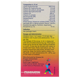 کودکان 1 تا 5 سال: روزی یک نوبت 7/5 سی سی قبل از صبحانه یا ناهار کودکان بزرگتر از 5 سال و نوجوانان: روزی دو نوبت هر بار 7/5 سی سی قبل از صبحانه و ناهارترکیبات: