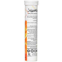 - حاوی 1000 میلی گرم ویتامین ث در هر فرص جوشان فاقد گلوتن و آسپارتام با طعم پرتقال