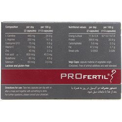 دو کپسول در روز با غذا یا پس از آن، به همراه مایعات میل کنید. کپسول ها باید حداقل در یک دوره 3 ماه مصرف شوند تا هر یک از مراحل اسپرم اتوژنز را تقویت کند. در هر صورت پروفرتیل می تواند و باید تا وقوع حاملگی مصرف شود. برای دریافت پاسخ به سوالات خاص در مورد مدت زمان مصرف و یا اطلاعات بیشتر، لطفا با پزشک خود مشورت کنید.ترکیبات:
