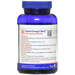 - هربال امگا3 باریج، فرآورده گیاهی حاوی روغن بذر کتان یا بزرک