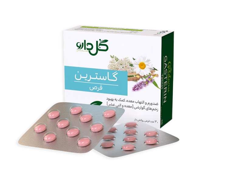 - قرص گاسترین حاوی ترکیبات گیاهی عصاره ریشه شیرین بیان، بابونه شیرازی و بومادران