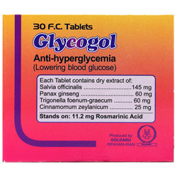 - قرص گلیکوگل، فرآورده گیاهی حاوی عصاره گیاه مریم گلی، جینسینگ کرهای، تخم شنبلیله و دارچین