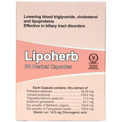 - مواد مؤثره : تخم خرفه حاوی : نشاسته و روغن محتوی سیتوسترول و اسیدهای چرب پالمتیک، اولئیک و لینولئیک می باشد. برگ شوید حاوی 4-2% اسانس می باشد که قسمت اعظم آن از کارون تشکیل یافته است. افزون بر این در شوید لیمونن، فلاندرن، ترپن و مقادیر کمی رزین و تانن یافت می شود. برگ های کنگر فرنگی دارای اسیدهای فنولیک تا 2%، اسید کافئیک، سینارین، اسید کلروژنیک و فلاونوئیدها است. میوه زرشک حاوی اسیدهای سیتریک، مالیک و ویتامین C بوده و مشتقات آنتوسیانین، رزین و تانن نیز در آن یافت می شود. در تخم شنبلیله هم وجود 50% پروتئین، موسیلاژ، کولین، آلکالوئید تری گونلین و ساپونینهای استروئیدی و اسانس به اثبات رسیده است. - آثار فارماکولوژی : گیاهان تشکیل دهنده کپسول لیپوهرب یکایک دارای اثرات فارماکولوژیکی متعددی می باشند که به طور منفرد و سینرژیسم موجب پایین آوردن تری گلیسیرید و چربیهای خون گردیده علاوه بر کاهش LDL موجب افزایش HDL پلاسما نیز می شوند. از جمله در برگ های کنگر فرنگی سینارین و کلروژنیک اسید موجب وقفه بیوسنتز کلسترول و کم شدن لیپوپروتئینهای خون میگردند. افزون بر این ترکیبات موجود در کنگر فرنگی و میوه زرشک موجب ازدیاد ترشح صفرا و تجزیه چربی های موجود در روده میشوند. ترکیبات موجود در تخم شنبلیله نیز دارای اثر مهار کنندگی بر آنزیم های لیپوژناز بوده و بدینوسیله موجب پایین آوردن تری گلیسیرید خون میشوند. مطالعات متعدد به اثبات رسانده است که ترکیبات امگا-تری موجود در روغن تخم خرفه اثر بسیار بارزی در پایین آوردن تریگلیسیرید و چربی خون داشته و این ترکیبات هم اکنون در سطح گسترده ای به تنهائی یا همراه با مواد دیگر جهت کنترل چربی و کلسترول خون تجویز می گردند. مطالعات تجربی متعدد بر روی حیوانات آزمایشگاهی و مطالعات بالینی روی انسان اثر بسیار مطلوب شوید بر فراکسیون های مختلف چربی خون LDL و HDL را تأیید نموده است. مجموعه گیاهان کاهنده چربی خون در فرآورده لیپوهرب موجب کاهش چشمگیر LDL و تری گلیسیریدهای خون شده و HDL را افزایش می دهند. این اثر در پیشگیری و درمان بیماری های قلبی عروقی بسیار مؤثر و قابل ملاحظه است. - موارد منع مصرف و احتیاط : به علت وجود گیاه کنگر فرنگی در فرمولاسیون این فرآورده، دارو را نباید در ناراحتی های شدید کبدی مثل تنگی و انسداد مجاری صفراوی، یرقان انسدادی و هپاتیت حاد ویروسی مصرف نمود. در مورد ازدیاد حساسیت آلرژیک به کنگر فرنگی و سایر گیاهان تیره کاسنی نیز منع مصرف دارد. - عوارض جانبی : کسانی که به گیاهان داروئی حساسیت دارند مصرف این دارو را با احتیاط انجام دهند. - آبستنی و شیردهی : مصرف این دارو در خانم های باردار و شیرده توصیه نمی شود. (برگرفته از سایت www.goldaru-co.com)