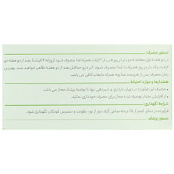 - مصرف در دوران بارداری و شیردهی: مصرف این فراورده در دوران بارداری و شیردهی تنها با توصیه پزشک مجاز می باشد.